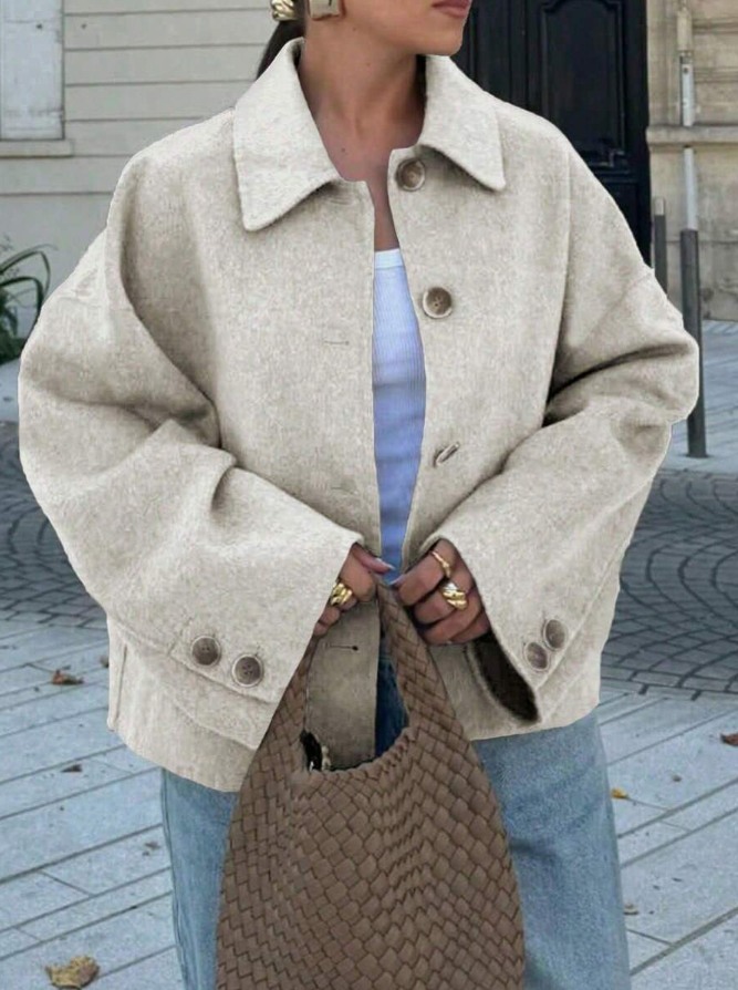 Plus décontracté que le manteau long, cette version courte en laine est parfaite pour le quotidien. Facile à porter, facile à laver — un basique que j'utilise tout le printemps.